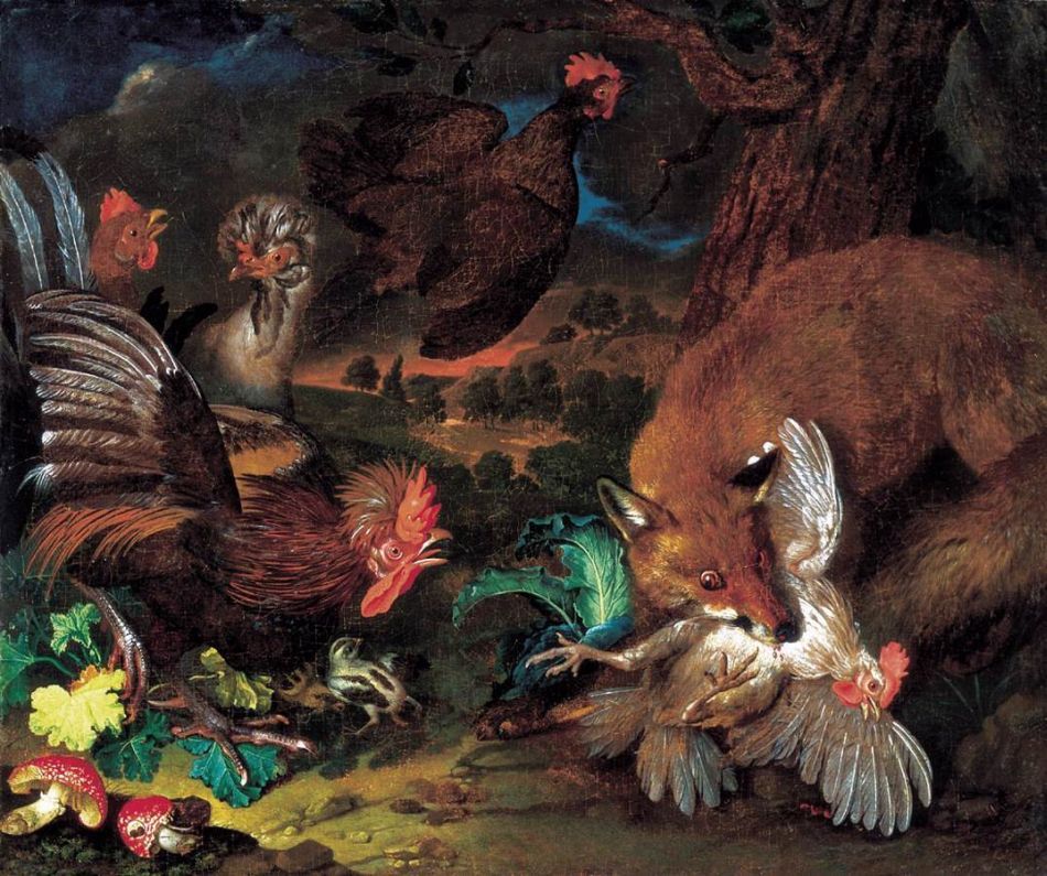 Today's painting depicts a fox destroying chickens, symbolic of the destructive powers of false prophets and prophetesses.