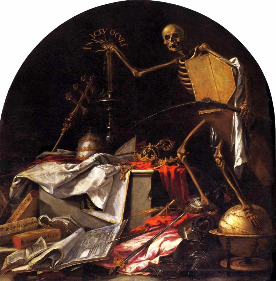 In Ictu Oculi (1670-1672) Juan de Valdes Leal (1622-1690) Baroque Style Hospital de la Caridad, Seville, Spain Image Source: Web Gallery of Art [ Illustration: Today's image shows the Grim Reaper snuffing out the light with his right hand, which I'm using a symbol of Job's dread, mentioned in the latter part of this chapter, that he was about to enter the land of the shadow of death where there is no light. ] SPECIAL NOTE: [ I will again be working through the Scriptures from Genesis to Revelation. I will be adding links, resources, images, and the like, upgrading the former work-through which began with the 2013-10-12 posting which can be found, along with the full Genesis to Revelation postings, in the Archive Page. Postings will be at midnight Eastern Time, as I am able. However, no chapters will be skipped, even though a posting may be late. And all postings will be housed in the Archive Page. ] Explanation: In Job 10, Job concludes his reply to Bildad. Job said that he was weary of his life, isolated in his pain, and bitter in his soul. He wanted to ask God why God condemned him, contended with him, oppressed him, and despised him while favoring the designs of the wicked. He said that such behavior was uncharacteristic of God because God does not see as men see. Also, God, whose years are not as few as human years, has no need to spend time inquiring about Job's iniquity and sin; he already knows Job is not wicked (because he has already had time to search out the truth). Job also appeals to God as his creator who took great care to make him. He asks, therefore, why God now destroys him. He notes that God made him from clay and asks if he will now bring him to dust again. Now, says Job, he is poured out like milk and curdled like cheese. In contrast to this treatment, Job cites God's personal attention to him -- assembling him part by part, granting him life and favor, and preserving his spirit. Job then makes a tender appeal to God, saying that these intimate interactions with God are in his heart; and he knows they are in God's heart as well. Having said this, Job lapsed back into his complaint. He said that God would not acquit him if he sinned; and even if he were righteous he would not be able to lift up his head because of his confusion and affliction, which were increasing. God was hunting him like a lion; and he renewed his witness against him, and increased his indignation, sending changes and war against him (1-17). Why, then, asks Job, did God bring him out of the womb? He wished, earnestly, that he had never been born, and that he could have been carried from the womb to the grave. He reminded God that his days are few and asked him to leave him alone so that he might take comfort for a little while before he went to the place from which he would not return -- the land of the shadow of death where there is no light and where the light is as darkness (18-22). [ Sermons: Joseph Pipa 1. Joseph Pipa 2. Various. ] Bile Chronologies -- Genesis to Revelation [Traditional Patriarchal Chronology. Judges Period Chronology 1. Judges Period Chronology 2. Kings of Judah and Israel #1. Kings of Judah and Israel #2]. [Intertestamental Period Chronology 1. Intertestamental Period Chronology 2. Intertestamental Period Chronology 3. Intertestamental Period Chronology 4. Intertestamental Period Chronology 5.] [New Testament Chronology 1. New Testament Chronology 2. New Testament Chronology 3. New Testament Chronology 4. New Testament Chronology 5.] RESOURCES PLEASE NOTE: Use the resources on this and other sites thoughtfully, particularly the commentaries and encyclopedias. I have attempted to list conservative, scholarly resources. However, some providers use liberal or liberal-influenced commentaries such as the Cambridge Bible for Schools and Colleges (in Bible Hub). Such commentaries are undoubtedly included by the provider for the wealth of useful information and comments which they provide. By consulting several commentaries, it should be fairly easy to sort out the wheat from the chaff. If, however, you would like personal assistance, write to me at AD LIB ARTS EMAIL. [ THEMATICALLY AND CHRONOLOGICALLY RELATED SCRIPTURES: Job 10: Job 8, Job 9]. [1] Job 9:27. [2] Luke 18:13. [7] John 21:17; Psalm 119:73. [9] Psalm 22:15. [10] Psalm 139:13-16. [18] Job 3:11. -- From Ellicott's Commentary for English Readers ] [ CHRONOLOGY: GENERAL. Patriarchs (Traditional). Judges # 1. Judges # 2. Kings # 1. Kings # 2. Prophets # 1. Prophets # 2. NT # 1. NT # 2. NT # 3. ] [ MAPS: Maps # 1. Maps # 2. Maps # 3. Maps # 4. Maps # 5. ] [ COMMENTARIES, ETC: GENERAL: Bible Study Tools; Bible Hub: Study Light; Blue Letter Bible // PSALMS: Monergism: Precept Austin: The Treasury of David; John Gill; John Calvin - Volumes 1, 2, 3, 4, 5] [ MUSIC: GENERAL: The Cyber Hymnal // PSALMS: Genevan Psalter (Instrumental). VARIOUS ARTISTS: Micha'el Ben David. Sons of Korah. Fernando Ortega. Janet Isaac Morrison. Music of the Bible Revealed - Suzanne Haik-Vantoura. Dr. David Erb. Gregorian Chants. ] HARMONY OF THE LAW GOSPEL HARMONIES Gospel Harmony - Summary | The Harmony of the Gospels - Augustine | Gospel Harmony Chart - Online Bible Greek Harmony of the Gospels - Robertson - (Downloadable PDF) | Gospel Harmony in English - Robertson - (Downloadable PDF) HEBREW AND GREEK INTERLINEAR BIBLES Job Detailed Outline The Book of Job (THE JUSTICE AND THE WISDOM OF THE COVENANT GOD) 2085 B.C., Uz The wisdom and blessing of exercising faith during undeserved suffering Job 10 Map 1: Bible Nations | Map 2: Empire of David and Solomon Map 3: Kingdoms of Judah and Israel | Post Exile Chronology. 1. The Affliction of Job (Job 1:1 - Job 2:10) 2. The Second Affliction (Job 2:1 - Job 2:10)